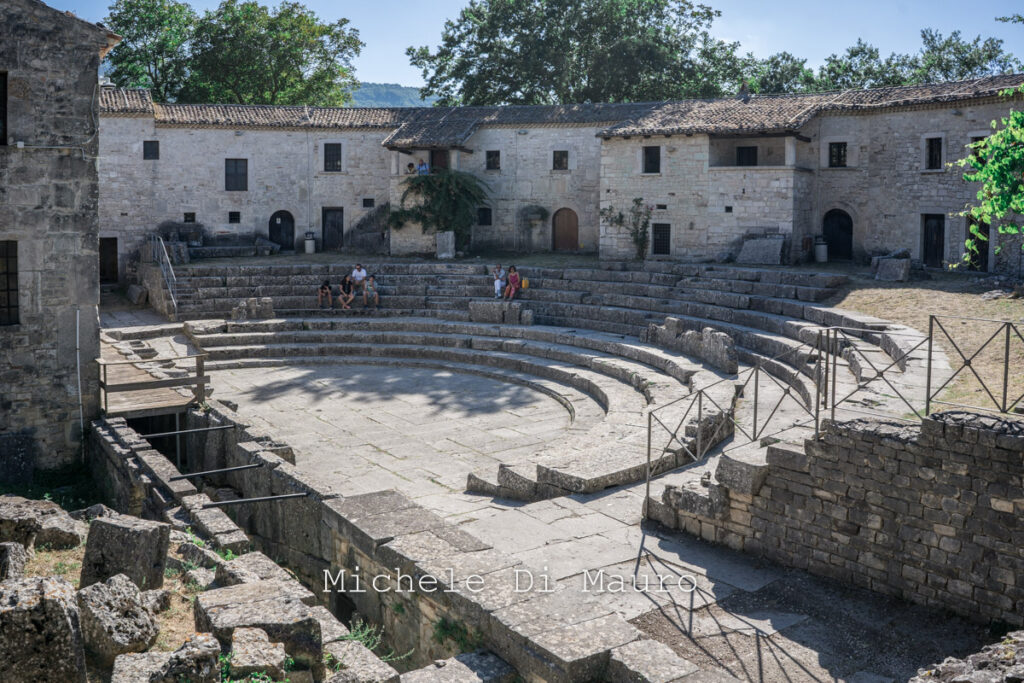 Giunti nel cuore di Saepinum, si scorge il suo pezzo pregiato, il teatro. Parzialmente alterato da una costruzione rurale che ha sostituito malamente la scena, non ha perso la sua bellezza, salendo le gradinate della cavea ho provato ad immaginare come potesse essere trovarsi lì durante uno spettacolo, tra suoni e atmosfere.